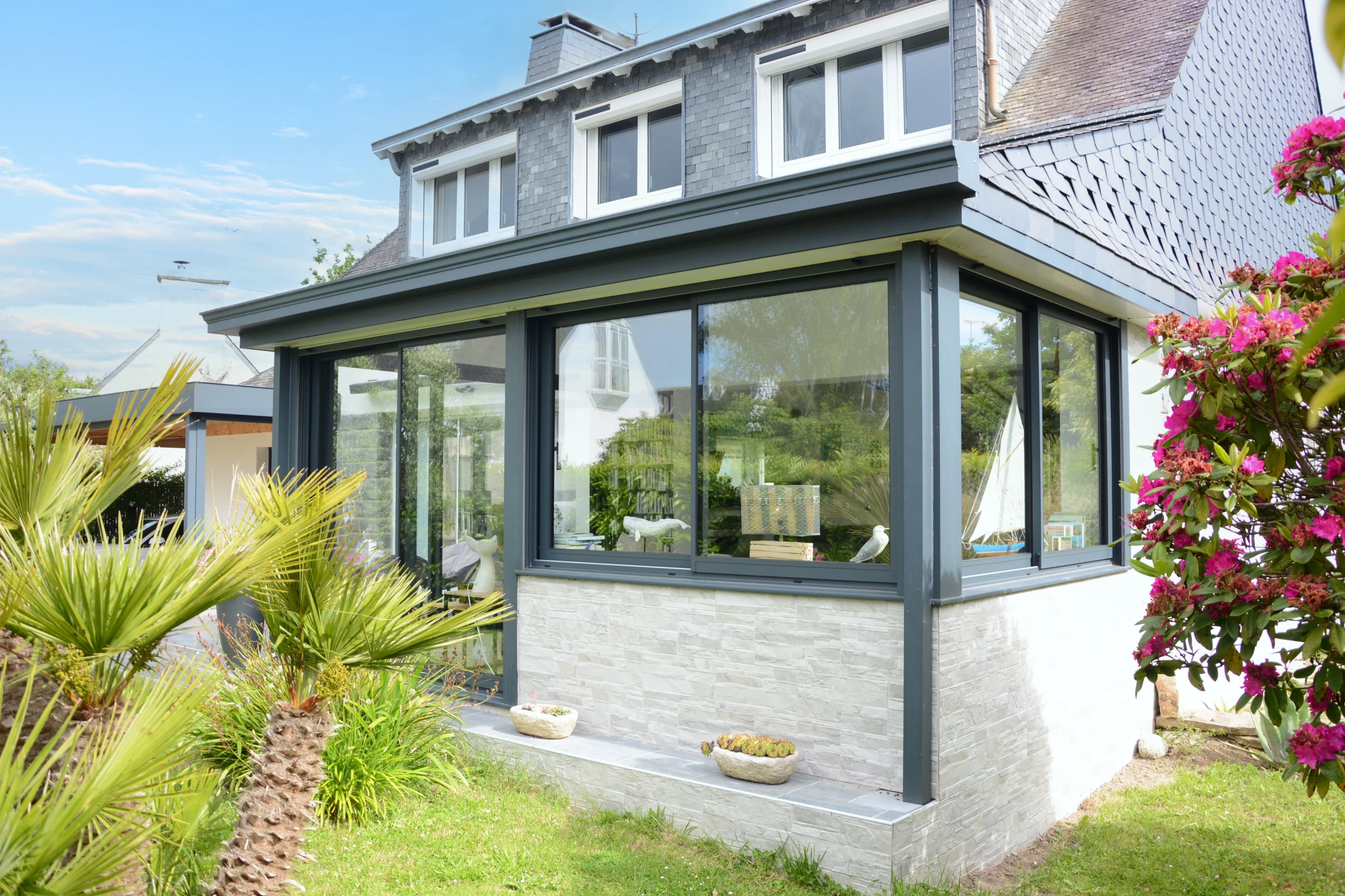 TROUVER MON ITINÉRAIREChez Line Extensions Vérandaline, nous réalisons des extensions de maison avec des toits en ardoise, plats, inclinés ou arrondis, pour aménager un salon, une salle à manger, une chambre parentale ou une cuisine.