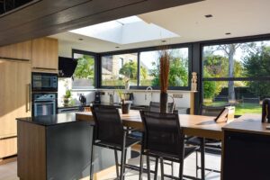 La luminosité et l'espace ouvert sont des aspects essentiels des designs d'extensions modernes. La maximisation de la lumière naturelle à travers de grandes fenêtres, des baies vitrées ou des puits de lumière peut transformer une extension en un espace lumineux et accueillant. Concevoir des espaces ouverts et aérés favorise non seulement un environnement de vie agréable, mais cela peut par ailleurs donner l'impression d'un espace plus grand. L'accent mis sur la lumière naturelle et les espaces ouverts répond aux besoins contemporains de fonctionnalité, d'esthétique et de bien-être​​​​.