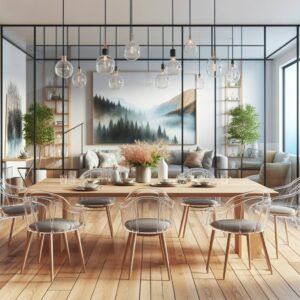 La transparence devient un élément clé du design d'intérieur en 2024, offrant une sensation d'espace et de légèreté. L'utilisation de matériaux comme le verre ou les surfaces acryliques dans les meubles, les séparations d'espace, ou les accessoires décoratifs permet de créer des intérieurs lumineux et aérés. Cette tendance se prête particulièrement bien aux petits espaces, où la transparence contribue à donner une impression d'ouverture et de fluidité. Les éléments transparents peuvent également être utilisés pour mettre en valeur d'autres aspects de la décoration, comme un éclairage soigné ou des pièces de couleur, créant ainsi un jeu subtil de visibilité et de caché.