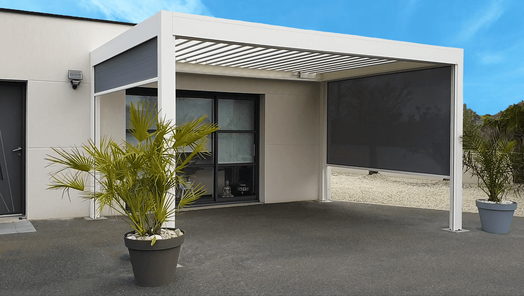 La pergola est un aménagement extérieur qui allie élégance et fonctionnalité. Elle se caractérise par une structure ouverte, souvent en aluminium ou en bois, qui permet de créer un espace ombragé et confortable dans le jardin ou sur la terrasse. Son principal avantage est sa modularité : certaines pergolas sont équipées de toits rétractables ou de lames orientables, permettant de contrôler l’exposition au soleil selon les envies. En plus de protéger du soleil, la pergola crée un espace de vie extérieur convivial, parfait pour les repas en plein air ou pour se détendre à l’ombre.